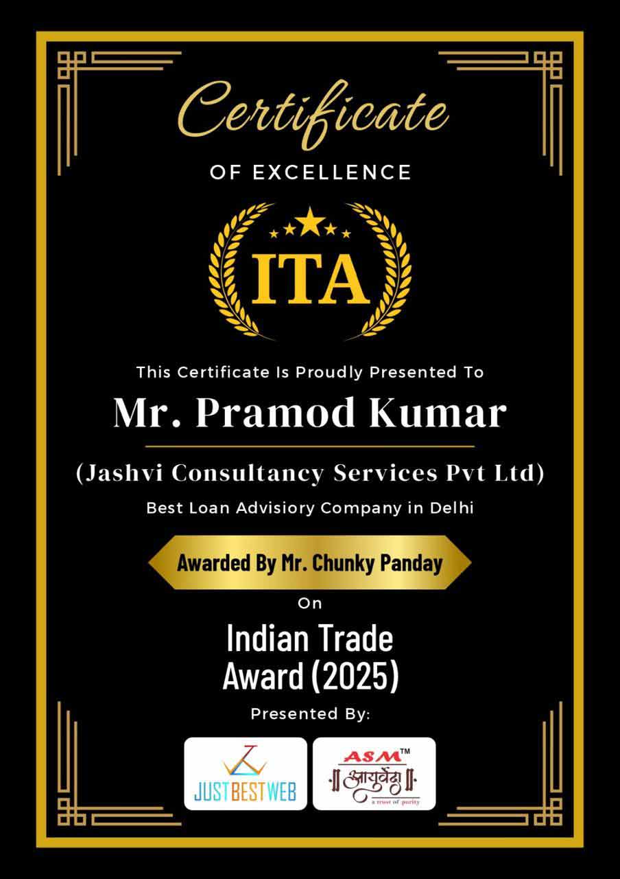 In recognition of outstanding performance and remarkable achievements as the BEST LOAN ADVISORY COMPANY IN DELHI